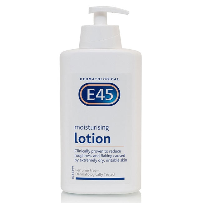 E45 moisturising lotion can be used all over your body, face and hands to care for dry and chapped skin. Its light, unperfumed plus non-greasy formula is easily absorbed and leaves your skin supple and moisturised. Allergy screened and dermatologically tested, E45 moisturising lotion is gentle enough for even the most sensitive skin.