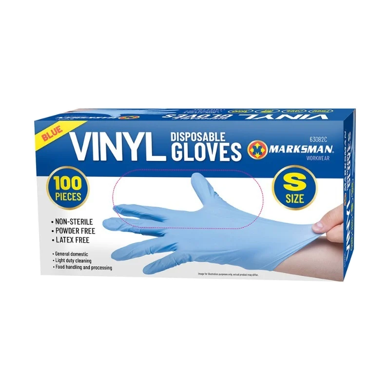 Product code: 2D-63082CMarksman Blue Vinyl Powder Free Gloves Small Pack of 100.