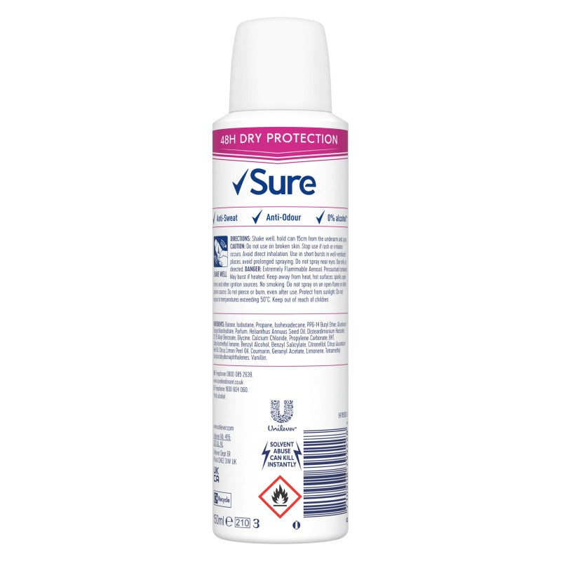 Sure Women Anti Perspirant Cotton Dry 150ml Sure Aerosol Cotton Dry is formulated to protect your clothes from white marks. It is the original anti-white mark deodorant and still the nation's favourite.